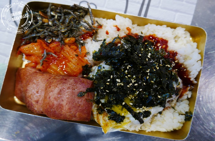| 經過一陣搖晃後,白飯與裡面的泡菜湯汁融合為一體,吃起來還蠻鹹香夠味,裡頭的配料有餐肉、小魚乾、泡菜跟一顆荷包蛋還有大量的海苔,如果有充分的搖勻白飯都會裹上醬汁染的紅通通的,每一口的白飯都有泡菜濃濃的香氣,那股酸鹹辣頓時食慾大開,餐肉的鹹度好下飯,原本煎的香酥吸了湯汁後又香又軟,小魚乾為整個便當的口感多加了層次,越嚼越香,還有顆荷包蛋覺得營養滿分,便當也因為大量的韓式海苔,整個便當除了海苔味道還有濃濃的麻油香氣,這個便當真的很特別,北編也是第一次看到,真的是從韓國原汁原味的在這裡呈現出來。 |