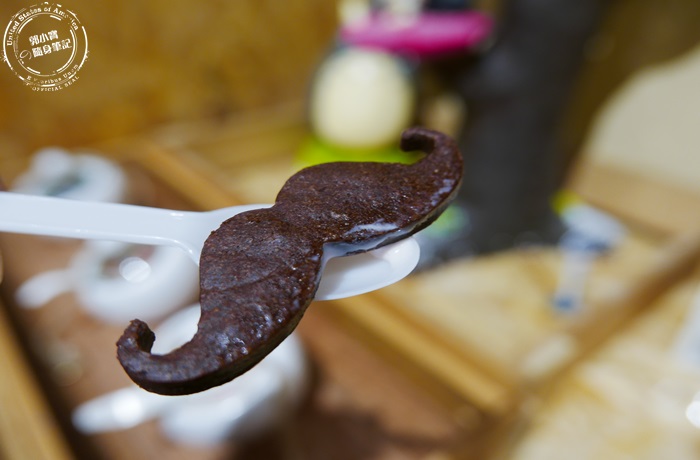 | 黑色的翹鬍子餅乾是巧克力口味,很像手工餅乾又香又紮實,巧克力香跟奶香非常的濃郁,而且造型太可愛,會讓人很捨不得把它吃完,這個是可以拍照的翹鬍子然後也可以把它吃掉。 |