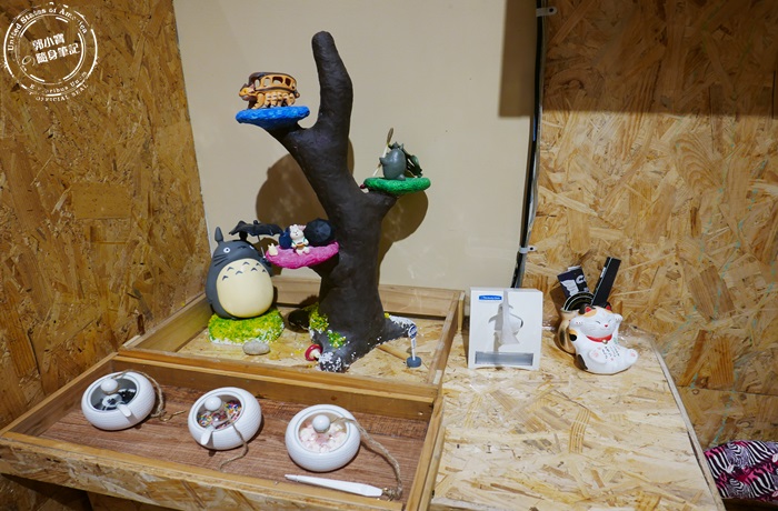 | 旁邊加料區的部分有很多龍貓的擺飾,頗有日式風格,一旁招財貓的位置就是放置名片的地方,整個空間很小巧可愛而且超療癒的。 |