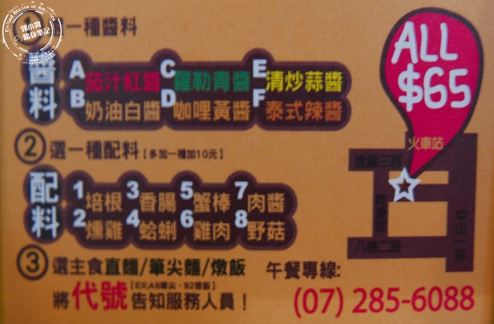 ‧您所在的位置: 郭小寶。呂小珊。這就是青春 > 郭小寶全省食況轉播 > 日本美食景點輕旅行.桃太郎行程精選 > 『食記美食。高雄三民』派諾尼義大利麵 |主食隨意搭配醬料配料均一價65圓|平價超值深受學生族群喜愛|