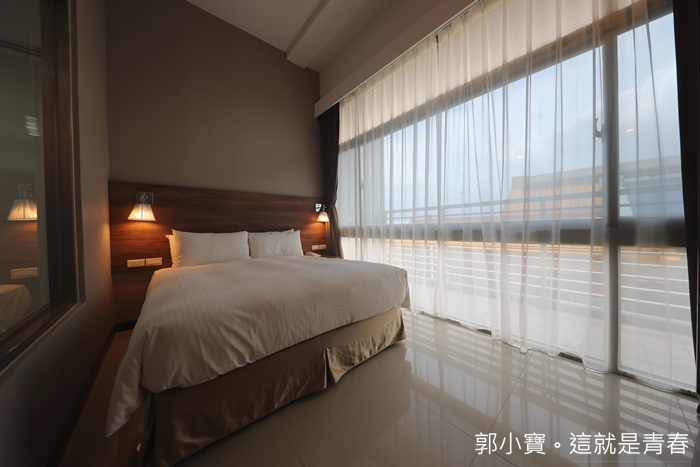 | 這就是我的房間,一張大的雙人床,沒有多餘的空間,但是我超喜歡這個房間的,尤其是她大部分的房間都是這樣的落地窗,明亮感十足,窗簾拉起來也可以完全遮蔽陽光,加上飯店前面沒有其他大樓,可以一眼可以望盡整片天空,真的很不錯,房間的挑高也滿高的,所以空氣流通也很好。 |
