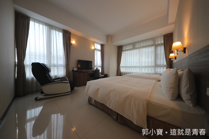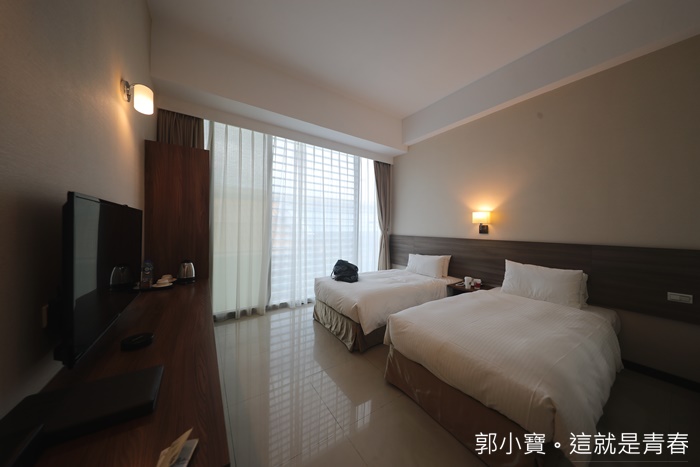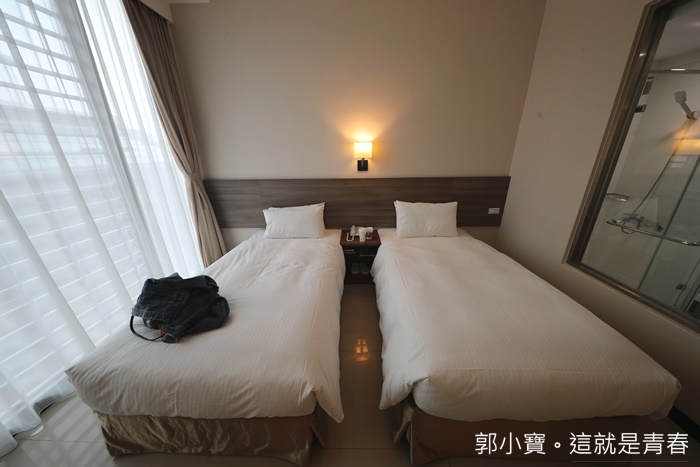 | 精緻雙人房的部分房間大了一些,採光依然很棒,兩張1+1的雙人床很適合帶小小朋友一起入住,為了增加房間的視覺感,廁所跟房間的隔間牆都是採用透明玻璃,有布簾可以放下遮蔽,每個房間的採光度都非常的厲害,地板踩起來很乾淨不會感覺黏黏的。 |