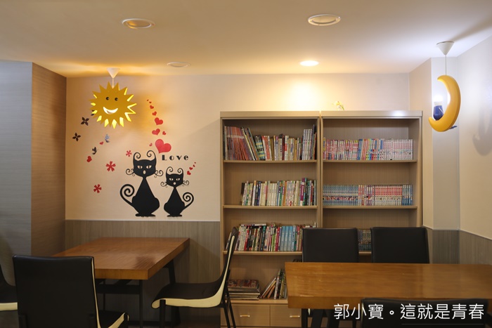 很多人應該都是跟我一樣,住飯店最期待的就是早餐了,大部分的飯店早餐都是自助式吃到飽的,樺舍的餐廳樓層有兩個樓層,二樓的地方還有一個書櫃,大部分都是兒童讀物,小朋友吃飯完還可以在這邊看書非常方便,因為家族大人邊吃早餐邊聊天,小朋友幸好有這些讀物安撫,不然可能早已翻白眼了,全家聚在這裡討論等等的行程。