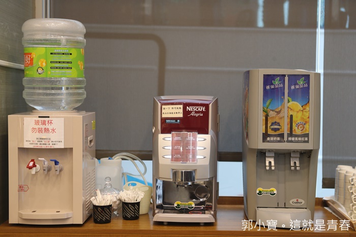 | 早餐的飲料有果汁跟咖啡機,咖啡機可以做出很多口味,熱牛奶也在咖啡機裡面。 |