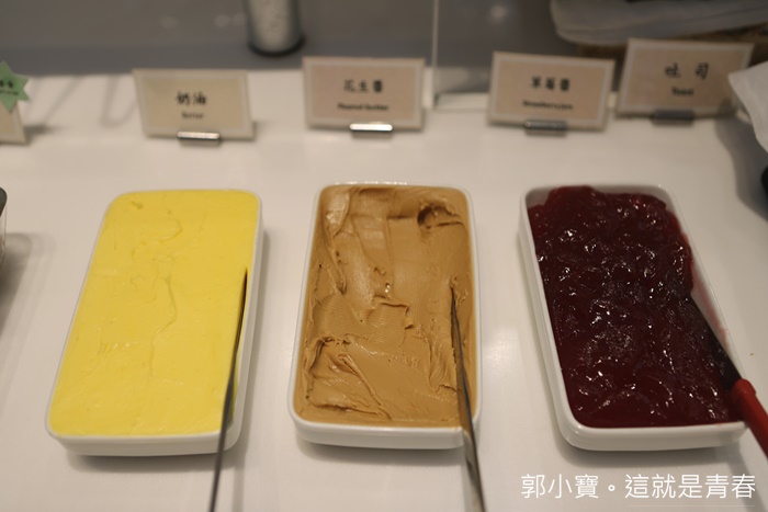 | 抹醬雖然不多,但是奶油、巧克力跟草莓經典三種口味都有。 |