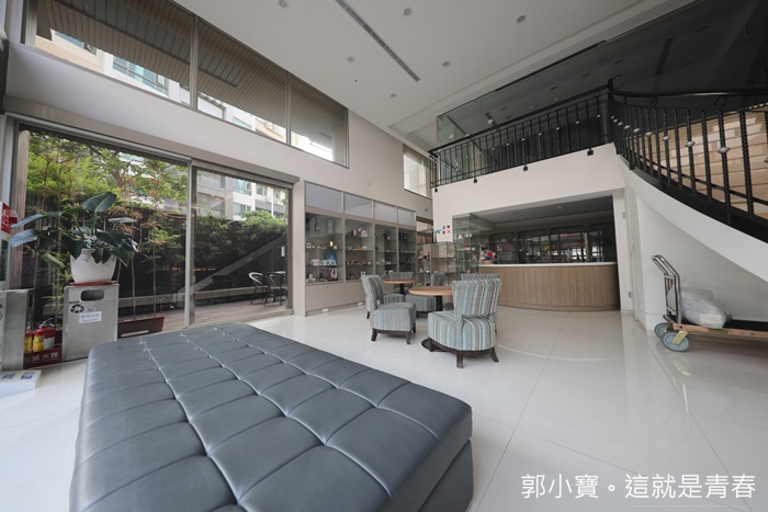 | 大廳延伸過去的另一邊也算是客人休息的空間,挑高的樓中樓是商務中心,下面會有照片跟大家分享,我個人覺得商務旅館一樓可以有那麼多的空間給客人休息真的還滿難得的,加上大廳一樓全部都是採用落地窗讓整體的空間明亮感非常充足。 |