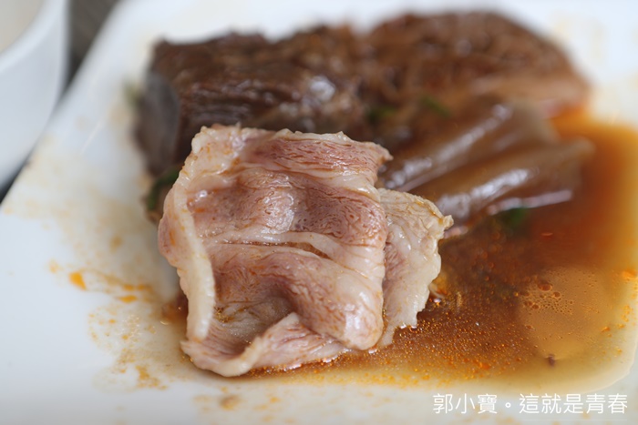 | 那麼好等級的牛小排真的不需要全熟,這樣的半熟成度味道最剛好,放到嘴裡咀嚼瞬間甜度爆發,好久沒有吃到這樣的火鍋牛肉了,麻神湯頭看起來雖然是豔紅色,但是卻一點都不會辣口,最主要還是他的麻香。 |