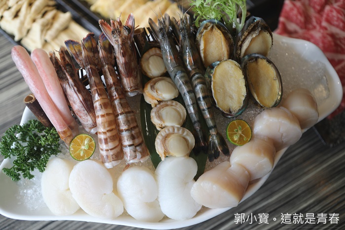 | 麻神的海鮮真的沒話說,干貝幾乎都是生食等級的,加上鮑魚、帆立貝、蟹管等都是超級新鮮,下鍋涮一下一變色就撈起來入口,每一口都是無敵的大海滋味,蝦子的種類主要有兩種,蝦子的部分也都是現撈海鮮,現撈的就是彈牙口感沒話說!! |