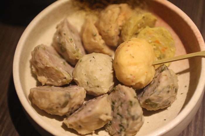 上面一串的就是嗆辣雙丸,這一盤全部都是丸子類的,有的還有爆漿內餡,熱熱吃非常不賴。 |