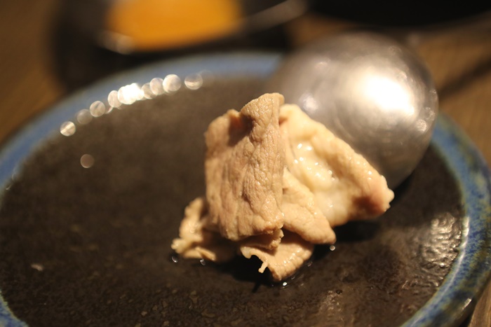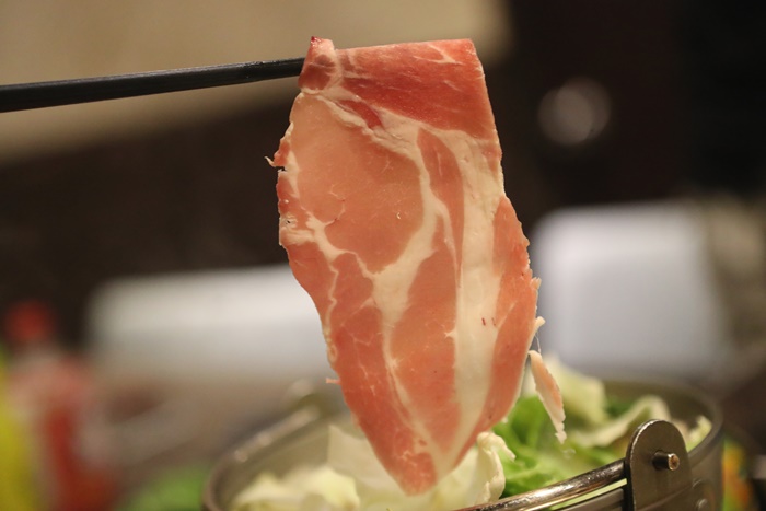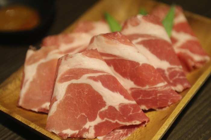 | 我們點的其中一個就是極黑豬套餐,極黑豬也是我喜歡的豬肉之一,他們家的肉夾起來也不會散開,片數也給的相當多。 |