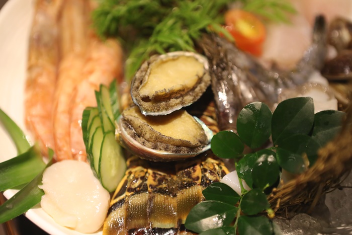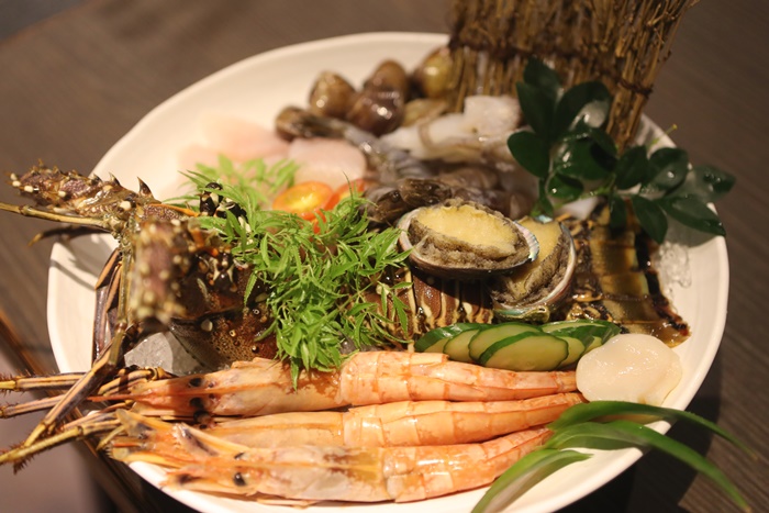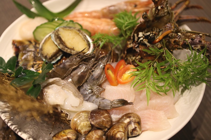 | 除了大龍蝦以外,還有魚片跟活鮑魚、白蝦、胭脂蝦、花枝等海鮮。真的非常豐富。 |