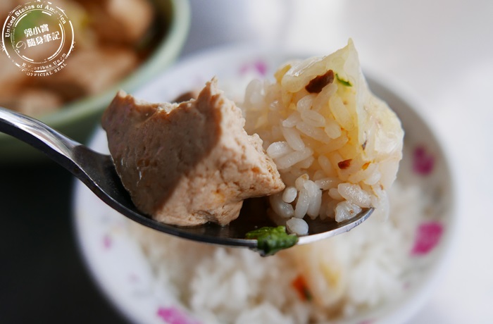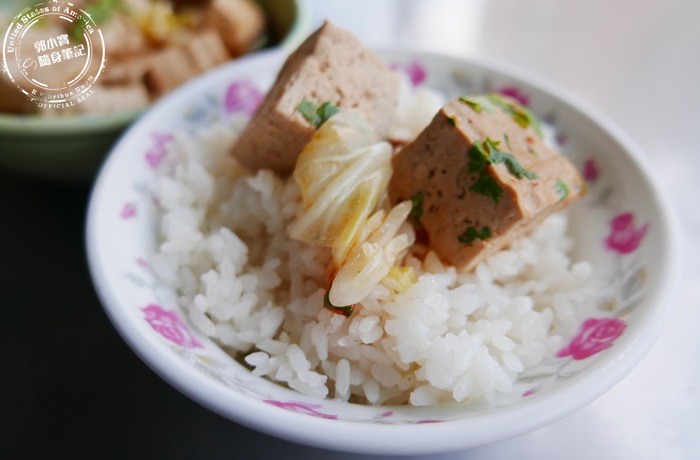 這裝白飯的碗也太懷舊了,超像阿嬤家會出現的碗,特別有味道,吃起來好像更美味了,將臭豆腐跟高麗菜還有湯汁一塊放在白飯上,搭配一起就是好吃又飽足。 |