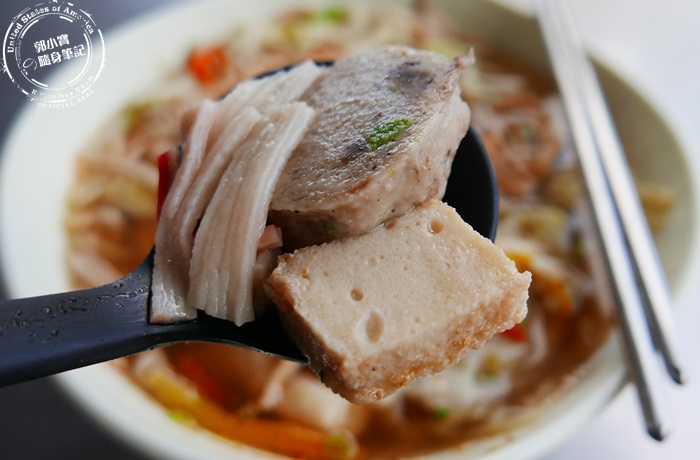 | 有大量的高麗菜、豆莢、花椰菜、紅蘿蔔、還有香菇頭製成的素料,跟麵輪,配料沒有剛剛意麵那麼多,但是份量一樣,超大碗,也因為有大量的蔬菜,吃起來一樣的香甜,蔬菜脆感豐富,素料超Q又有嚼勁,越嚼越香甜,麵輪吸滿湯汁,每一口都超水潤,層層的麵輪口感很Q香氣十足,外面常見的滷肉裡頭就是會放麵輪進去一起滷,就是那個很常看到一圈圈圓圓的,只是店家把他切成塊狀放進這燴飯裡,一樣很有口感,很好吃。 |