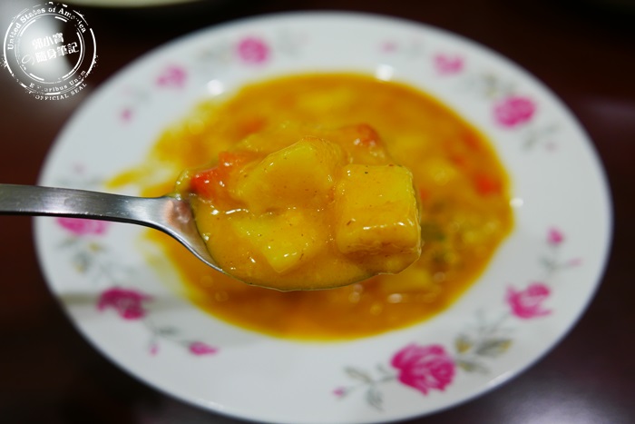 | 這道綠咖哩其實如果不是對綠咖哩特別情有獨鍾的人,在瀏覽菜單的過程中絕對會忽略這一道,但艾編大力推薦您一定要來試試看,看到的跟你吃在嘴裡的感覺完全不一樣,原本艾編看到這道的時候也想說應該就是奶香的味道很重這樣而已,但其實他算是這三樣咖哩裡頭口味最重的,看起來他最清爽最無殺傷力的竟然口味是最重,但不是重的不舒服死鹹的那種,是台灣人會喜歡的口味,鹹的超下飯超夠味,奶香也不是說特別的濃郁就很舒服的奶味,香料味也沒有超級的濃厚,微微的辣度讓整個咖哩的質感更提升,裡頭的胡蘿蔔跟雞肉也都非常的軟嫩,很入味很好咀嚼。 |