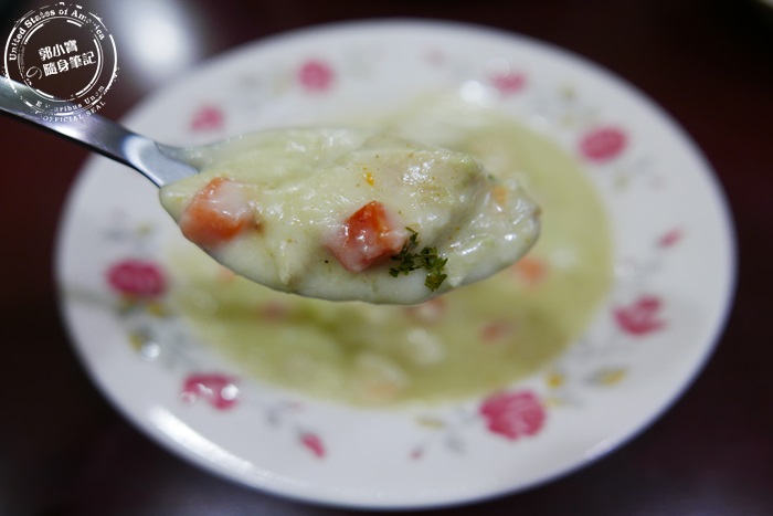 | 這道黃咖哩算是蠻濃稠的,但是又不像勾芡勾太重的那種感覺,吃在嘴裡的香氣很重,除了有很多層次的那種香料味之外,濃濃的椰香也是一大特色,吃起來很奶很香濃,胡蘿蔔跟馬鈴薯雖然是丁狀,樣貌非常完整,但是在嘴裡軟綿綿的跟什麼似的,連雞肉也是,根本不用花太多力氣去咀嚼,而且不會很重口味,算是比較清爽的,也算是很基本的入門款,這個就單吃或是配飯配烤餅都可以。 |