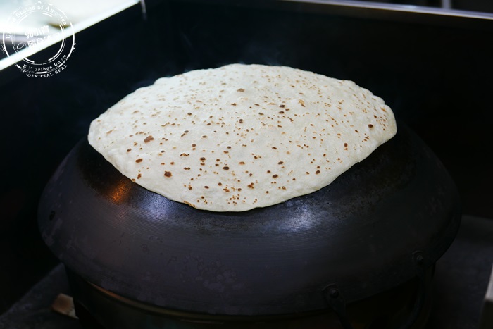 | 這樣子的烤餅應該大家都不陌生,而且他們製作烤餅的功夫像是與生俱來的,甩餅超順暢在鍋子上面翻來翻去的,也很不怕燙的感覺,餅皮放上鍋烤沒多久,就變成這很厲害的樣子,也是店家最有特色最具魅力的。 |