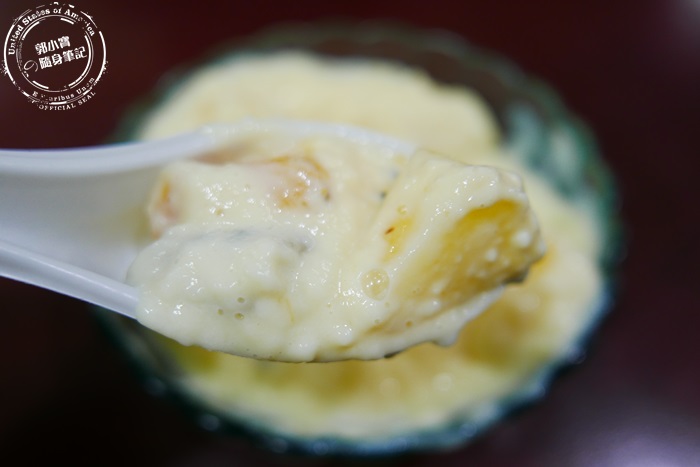| 會點這道甜品呢,是因為艾編第一次來,因為要跟朋友一起合吃,所以並沒有點組合套餐,但因為組合套餐裡面都含有這一樣甜品,覺得特別就單點來試試看,一開始送上來的時候,根本看不到有水果,也猜不出來是什麼,挖起來才發現水果都在底部,有兩~三種水果,有新鮮的奇異果也有像罐頭類黃色的水蜜桃,外頭裹著的醬吃起來類似像牛奶卡士達,但是比較軟滑,很清爽的吃進嘴裡就化掉,牛奶香草味也很明顯,冰冰涼涼的超好吃的,搭配裡面的水果,酸酸甜甜的超適合夏天,尤其台灣水果就是最好吃的,這樣搭配在一起真的還蠻特別蠻可口唷!大家有機會可以嘗試看看。 |