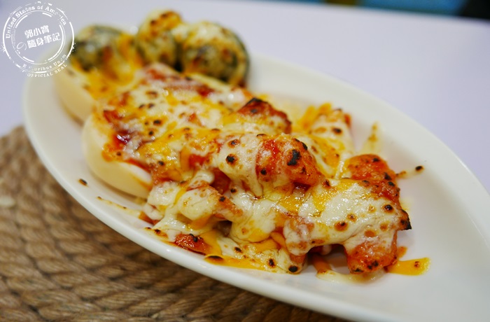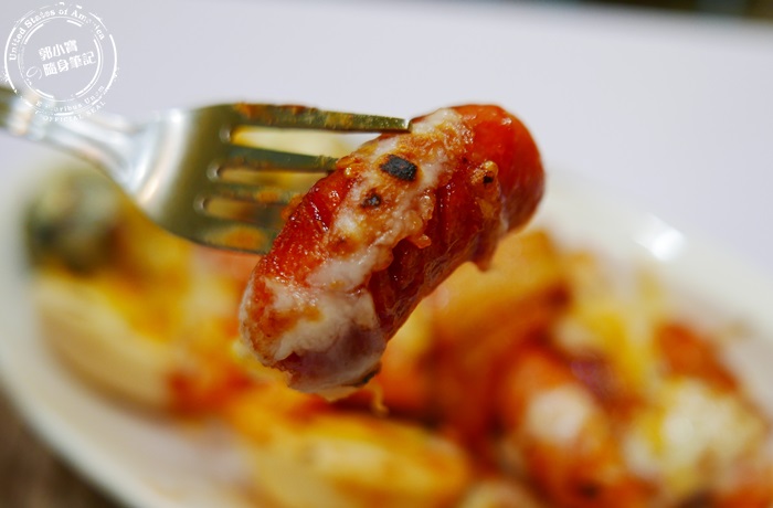 | 跟剛剛年糕串一樣有的鑫鑫腸,加上起司味道變得更重了,雙重鹹味搭配年糕一起吃會比較中和,不然會太鹹,鑫鑫腸也是有煎過,外表焦脆吃起來彈牙,配上起司濃郁Q軟,層次感十足。 |