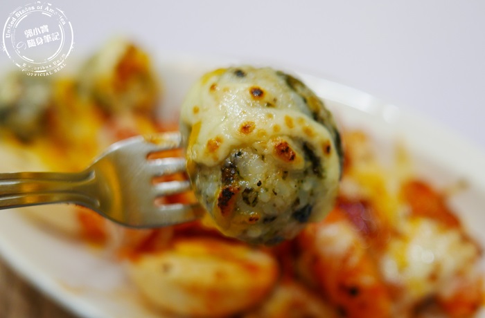 | 加點的拳頭飯,其實就是一般韓式料理很常見的一道,飯加上韓式海苔捏成一顆一顆的球狀,就是最近很夯的拳頭飯,像是一個小飯糰,他們家的拳頭飯製作起來,口感很軟不太像在吃飯的感覺,有點類似像在吃竹筒飯那樣的軟度,黏性很夠,有海苔的香氣,麻油跟白芝麻的香也是很明顯,但不濃烈,配上烤過起司的鹹香,吃起來的味道還不錯,一顆也不會很大顆,但是吃起來就蠻有飽足感的,只是沒有很特別,如果沒有嘗試過的朋友倒是可以加點來嚐嚐看。 |