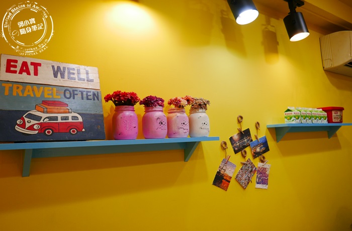 | 店裡的空間小小而已,但是店家佈置的蠻可愛蠻溫馨的,不會覺得太擁擠,黃色的元素更加明亮,用很多很跳的顏色營造很繽紛的感覺。 |