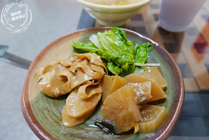 還有比較下飯的配菜,炒青菜跟燉白蘿蔔還有麵腸,看似油油亮亮的,但是吃起來一點都不油膩,青菜爽脆,麵腸軟Q很夠味,白蘿蔔燉煮的超入味,軟嫩細緻香甜,濕潤鹹香口味又不會太重,超下飯的,一整個便當吃完好飽足,就算不是素食者,來吃他們家的素食便當,口味也是很可以的。