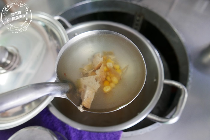 | 湯品跟飲料是放在騎樓這裡的空間,自助式的,湯品看起來也蠻厲害的,非常的燙唷! |