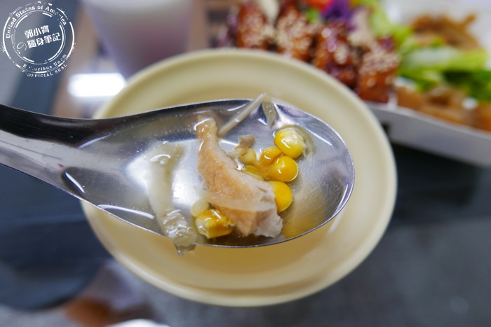 | 湯品真的清甜好喝,雖然看起來清澈的像水一樣,可是很有味道喔,非常鮮甜,素料很有嚼勁吃起來蠻香的,還有大量的玉米,甜味十足口感豐富,熱熱的很順口好好喝。 |