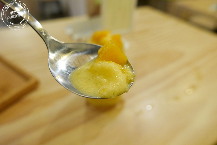 | 上頭有舖滿新鮮芒果,在這已經入秋的期間,竟然還能吃的芒果,超開心的,他們家的芒果超甜超水超香的,品質真的棒棒,下層冰沙部分也有淡淡的芒果香,冰沙綿綿的細碎冰感再嘴裡化開,香甜的芒果味帶點微微酸勁,夏天還沒走遠,芒果好棒,中午天氣炎熱,來上這一杯冰沙整個好過癮。 |