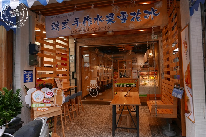 | 店面高掛的布條,寫著韓式手作水果雪花冰,下方還有韓文,其實艾編也不知道韓式雪花冰是怎樣的,反正也沒有多哈韓,看著立牌上的在地果農,衝就對了,東西一定新鮮,農民的辛苦就是要我們大力支持,哈韓的朋友們可以來嘗試看看。 |