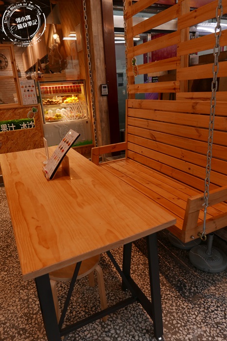 | 騎樓最吸睛的座位區,這木製的吊椅情侶來坐這邊肯定很浪漫,閨蜜們在這裡打卡拍美照,放上IG肯定變網美呀!整個氣氛還不錯,不過艾編我還是喜歡有冷氣的地方,所以騎樓這部分舒適空間還是留在冬天再來吧! |