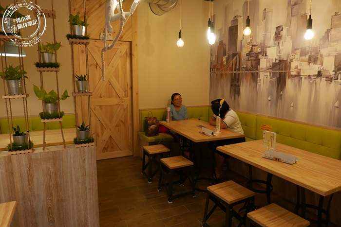 | 再往裡面走,就是比較多人的座位區,空間更寬敞舒適,適合幾個好朋友一起過來歡聚,店裡的配色裝潢,艾編都好喜歡,木質裝潢配上綠色元素,另人心曠神怡舒服自在,很有藝術感,這樣吃冰的環境好優喔! |