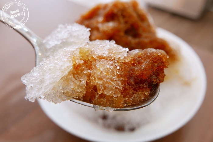 | 這看起來很像日本富士山的剉冰,擺盤太可愛了,整個融化人心呀,剉冰加上店家用砂糖及紅糖熬煮的黑糖漿,香氣濃郁不甜膩,十足的古早味,黑糖香氣濃烈,跟清冰一起入喉,香甜沁涼好舒服,看似簡單的剉冰,其實很不簡單。 |