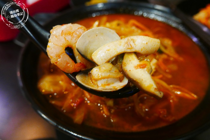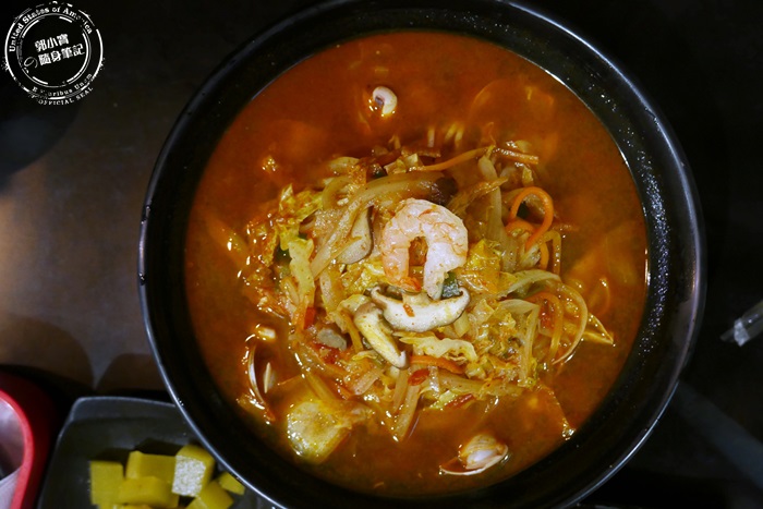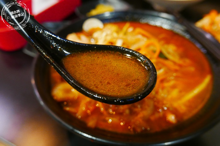 | 湯頭超級鮮甜,香氣十足,重點非常韓國味,而且辣度來的很快,後勁也強,艾編真心覺得這個有辣,怕辣的朋友們可是要三思唷!這炒馬麵的湯頭真是讓人又愛又恨呀!很好喝可是又好辣。 |