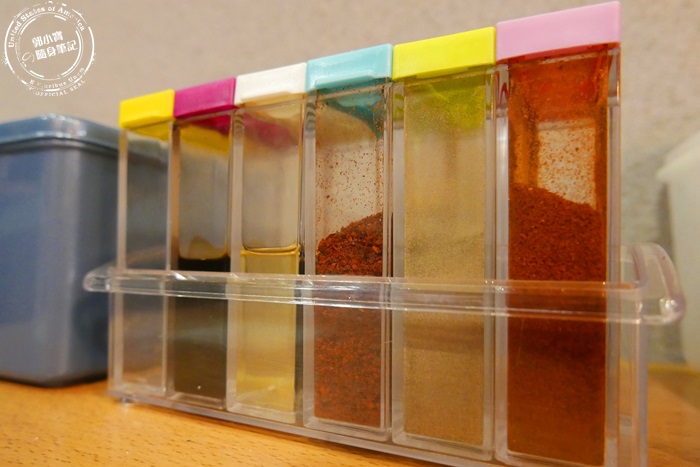 | 各式各樣的調味料,這容器也太繽紛可愛了吧!很想每種都來嘗試一下。 |
