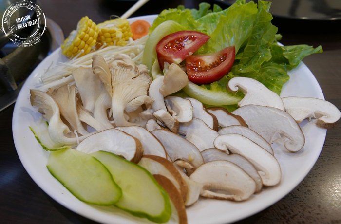 | 套餐組合裡的綜合百菇拼盤,蠻大一份的,蔬菜菇類通通有,等等海鮮塔蒸完的精華入鍋後,就可以像煮火鍋一樣煮這些食材囉! |
