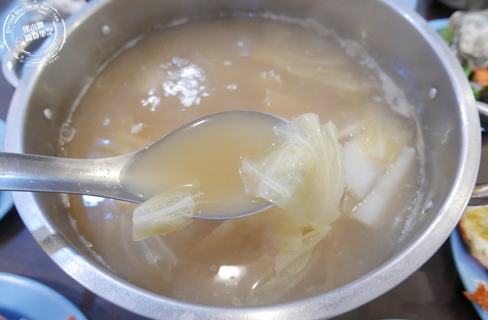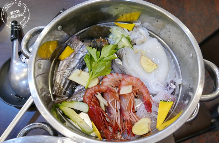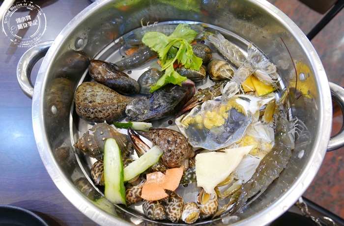 | 所有精華都集中在這鍋高湯裡,湯頭顯得濃郁,跟剛剛的蔬菜湯頭比起來,鮮甜度瞬間大增,滿滿的大海味道,這個湯超級好喝的,除了蔬菜的甜還有滿滿的海鮮精華,光是這一鍋湯艾編就不知道喝了幾碗,味道超舒服的,非常天然原味自然鮮甜,超讚的。 |