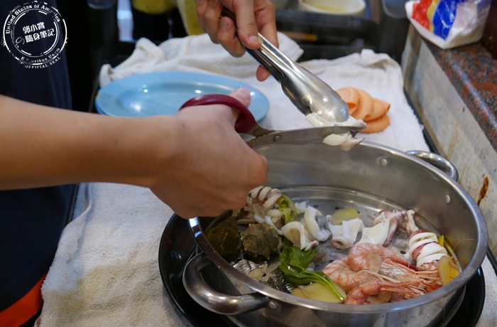 | 小幫手很貼心的還會將花枝剪成一塊塊好入口的大小,所有海鮮食材也會直接擺盤上桌,整個服務真的很用心很貼心。 |