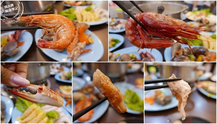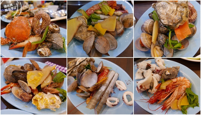 | 讓老闆搭配的海鮮果然美觀豐富多了,螃蟹、蝦子、貝類、螺類,通通吃的到,送上桌整個好吸睛。 |