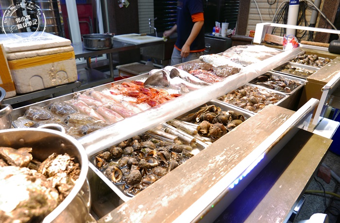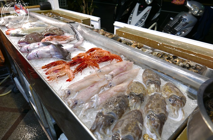 | 上面就是滿滿的海鮮大平台,乍看下還以為來到了旗津,老闆說他們家的海鮮食材都是早上到東港採買的,有些是找漁船直接跟他們挑選比較少見少量的海產,所以他們家的東西都蠻新鮮蠻豐富的。 |