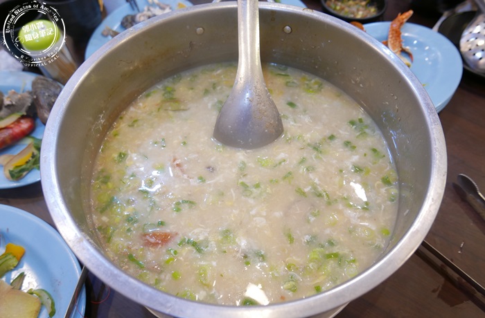 | 最後撒上蔥花再加上大量的白胡椒粉,就是鍋超濃郁海鮮粥,超大鍋絕對吃的滿足,因為這次來的五個人裡面,有一個不愛吃海鮮,那他就可以專攻火鍋料跟肉片,還有這一大鍋粥,也是可以吃很飽,而且吃不完還可以外帶回家喔。 |