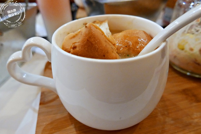 | 如果覺得剛剛的五穀雜糧麵包太乾,可以撕成塊狀丟進濃湯裡,吸收了濃湯會更濕潤更柔軟,味道更鹹香,艾編很喜歡麵包下去泡濃湯,大家可以試試看這樣有沒有更好吃唷! |