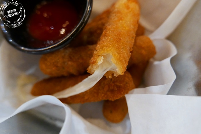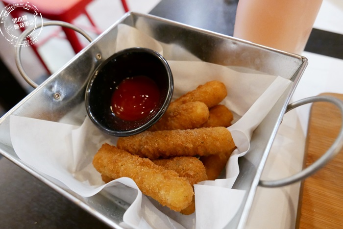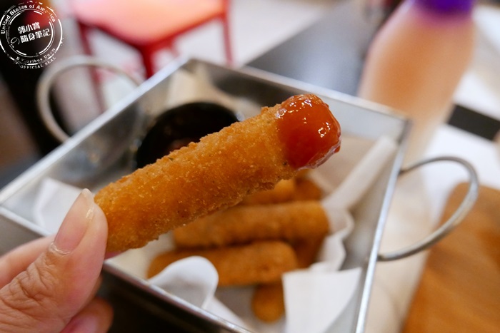 | 其實這個起司條還蠻划算的,幾個好朋友可以點來一起分享,起司控一定會愛上的,雖然是現炸的但是送上桌的時候溫度不是太高,直接用手拿就可以了,簡單沾番茄醬入口來去享受牽絲的快感。 |