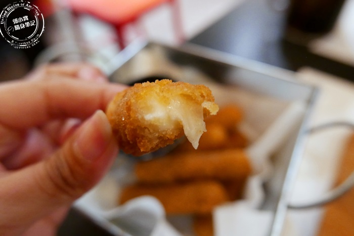| 從頭吃到尾還是能吃到起司,就是這麼的實實在在,起司吃好吃滿,這一盤幾乎是艾編吃光光的,因為艾編很愛吃起司,應該蠻多女孩兒都無法抗拒的,什麼熱量減肥就先拋一旁,吃了再說,男孩們筆記一下,來這裡約會別忘了加點這個起司條讓女朋友開心一下。 |