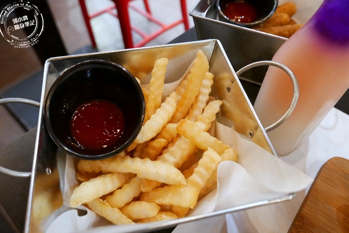 | 看到菜單寫黃金脆薯,還以為是那種比較厚實外表有微微裹粉的薯條,送上桌一看原來是波浪薯,也不至於難吃,就是一般般,剛炸出來的當然沒話說,一樣外酥脆內軟綿,馬鈴薯味道香濃,沾上蕃茄醬酸酸甜甜的讓人不知不覺的一口接著一口,愛吃薯條的蠻推薦的唷! |