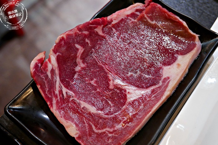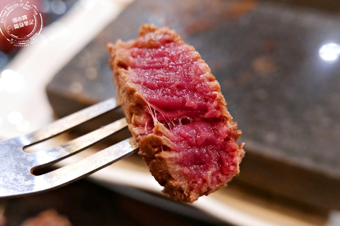 | 粉紅色澤的肋眼牛排,肉質柔軟帶微微筋性,所以口感略有嚼勁,高溫鎖住肉汁所以吃在嘴裡,是滿滿的濕潤鮮美,濃郁的牛肉香氣,簡單的撒上店家提供的喜馬拉雅山鹽,更能帶出牛肉自然的鮮甜味,汁多味美非常的享受,雖然這塊肋眼牛排厚度沒有很厚,不過這樣的厚度跟柔軟度,在嘴裡是很好咀嚼的,不愧是店家最頂級的牛肉,好食。 |