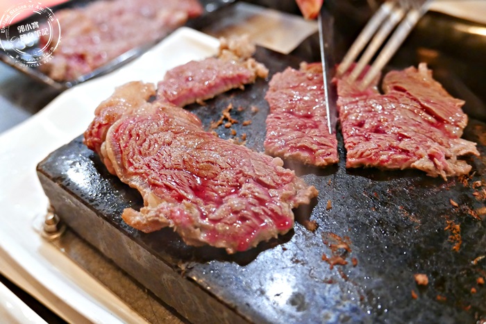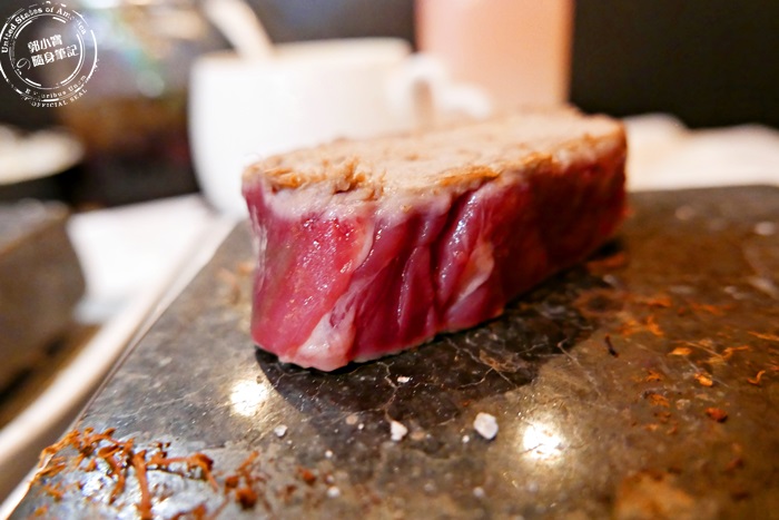 | 如果覺得一整塊很難掌控,可以再把它切小塊一點,這樣自己想要吃熟度比較好拿捏,雖然一開始會有服務生來操作,但通常他們只是先指導一部分,後續還是交由客人自己來,因為這樣才能邊吃邊玩,自己動手煎出想要的牛排,成果才會是甜美的。 |