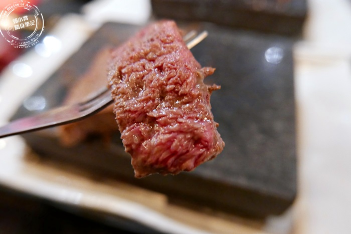 | 使用日本火山質地開採出的天然火山岩,含有鈉、鎂、錳、鐵等數十種礦物質與微量元素,因為密度高,可加熱至400度高溫以上,加熱後不會產生有毒物質,同時散發出遠紅外線,能迅速鎖住肉汁,保持鮮甜,讓食材呈現最自然的原味,看看這牛肉放上去沒多久,就能翻面,豐富肉汁看起來好逼人,高溫岩盤的魅力果然不同凡響,用餐像是看一場表演秀一樣,岩盤就是伸展台,熟度剛剛好的牛肉不囉唆立馬來品嚐看看。 |
