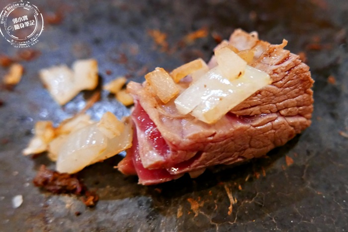 | 店家會提供生洋蔥,一樣可以入岩盤下去拌炒,搭配牛排一起吃,多了洋蔥的香甜味,更添加爽脆的口感,洋蔥跟牛肉就是超搭,洋蔥的甜跟牛肉的甜和諧的在嘴裡交融,經由岩盤高溫,洋蔥辛辣度降低,水潤口感讓人一吃上癮。 |