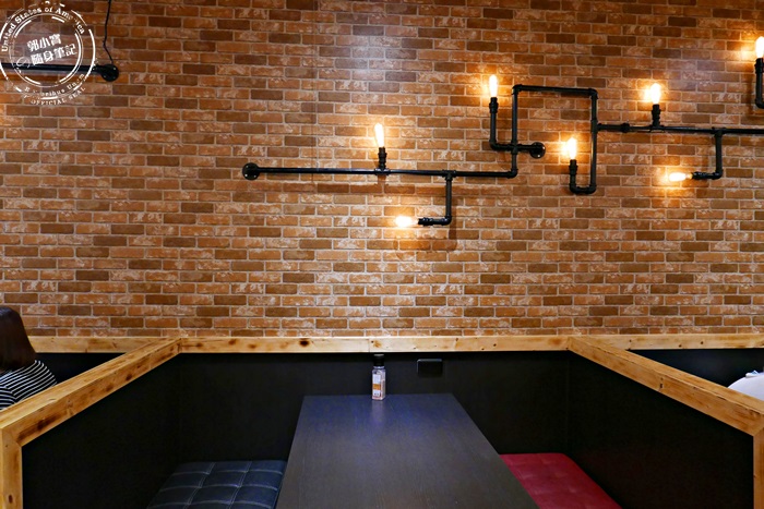 | 2~4人可以坐這種有專屬空間的位置,比較舒適自在,牆上富有設計感的燈泡,讓整個氛圍更有感覺,可惜了這次就算有訂位也沒能坐這裡,因為剛進門的時候完全是客滿的狀態呀! |