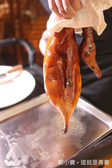 | 看看工作人員抓起鴨子的時候滴下來的油真的超多的,看的我們當下都口水直流了,真的好瘋狂,這油未免也太多了吧,看得我好心疼,好想跟師傅說這些油可不可以等等留起來幫我淋在白飯上。 |